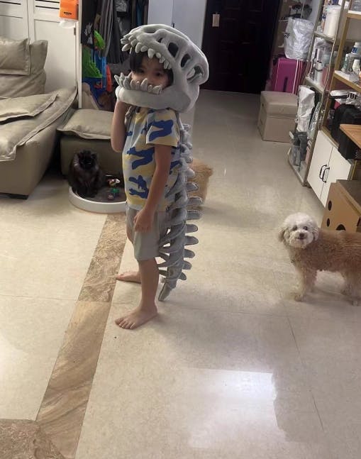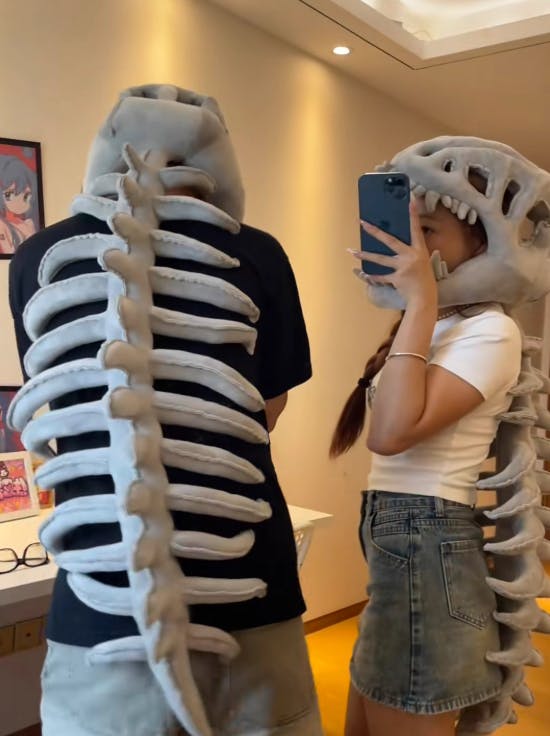 🦖 Einzigartiges Kostüm im 3D Dino-Skelett Design.