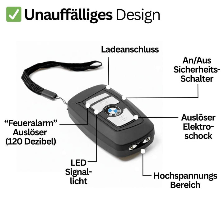 Lieferumfang: 1x StingKey® Pro - getarnter Elektroschocker inkl. passenden Ladekabel